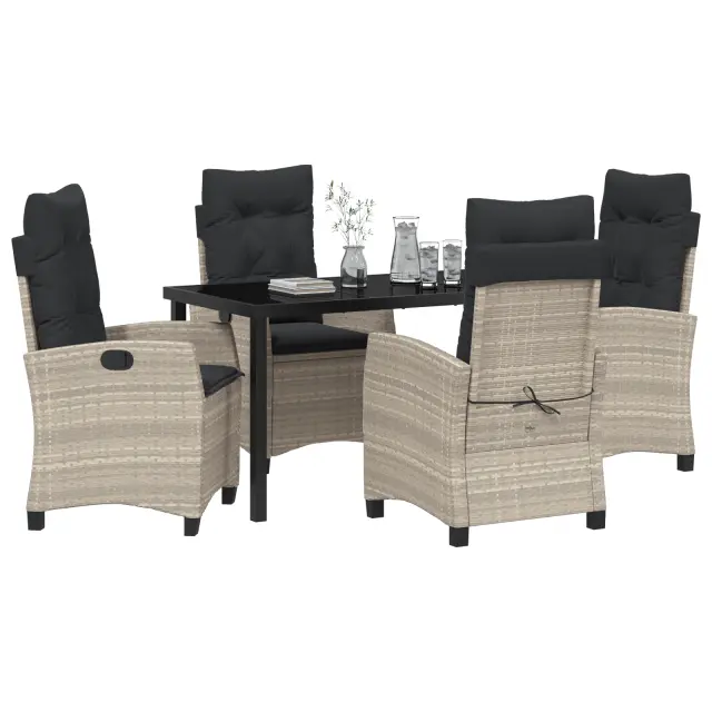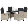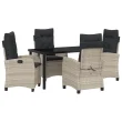 vidaXL 5-delni set za zunanjo jedilnico z blazinami, svetlo siva poli ratan