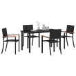 vidaXL 5-delni vrtnarski jedilni set črn poli ratan