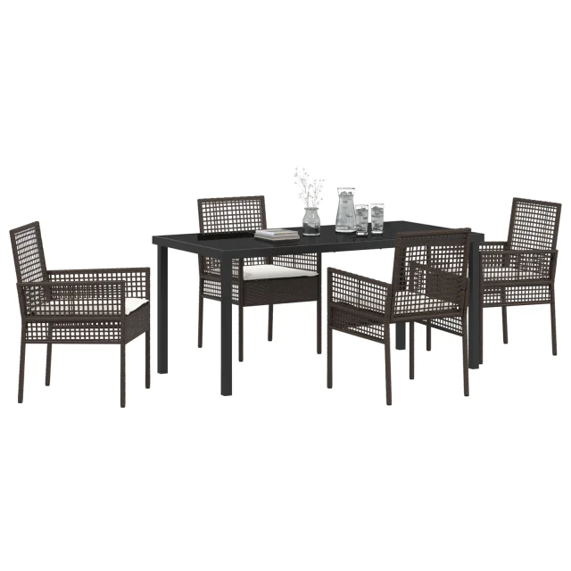vidaXL 5-delni vrtnarski jedilni set z blazinami rjava poli ratan
