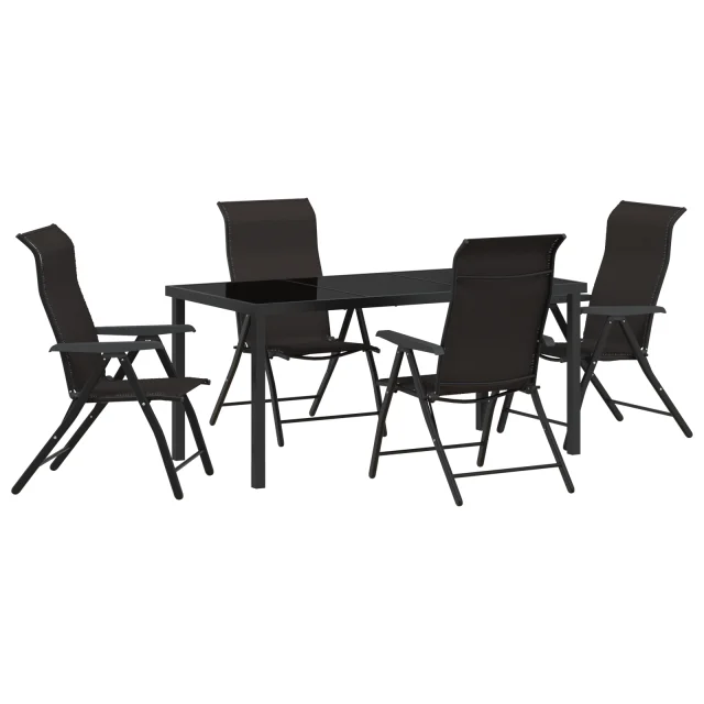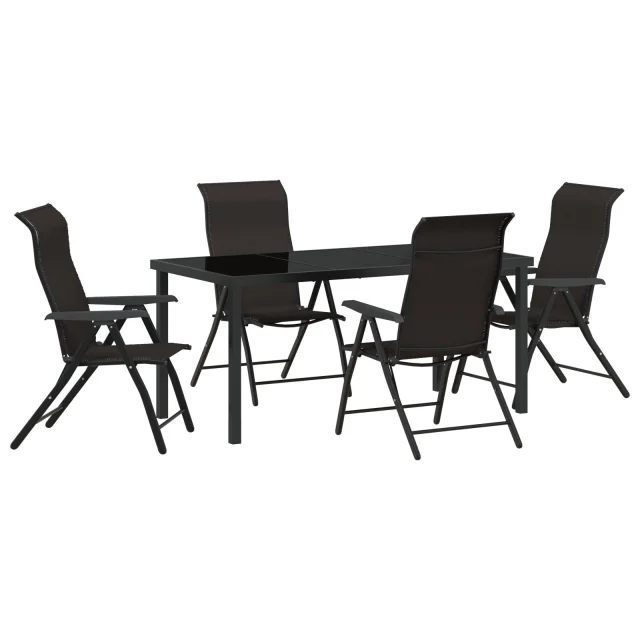 vidaXL 5-delni vrtnarski set z jedilnico črnega poli ratana