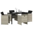 vidaXL 5-delni vrtni jedilni set s blazinami svetlo siva poli ratan