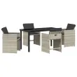 vidaXL 5-delni vrtni jedilni set z blazinami svetlo siva poli ratan