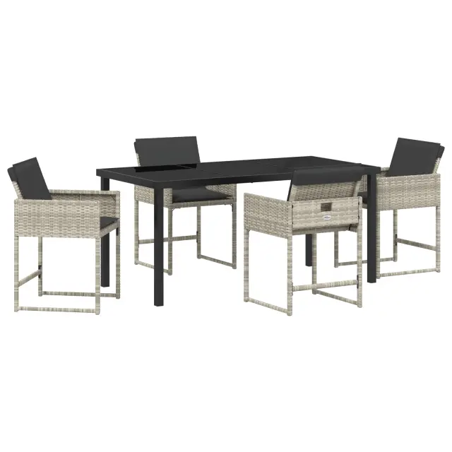 vidaXL 5-delni vrtni jedilni set z blazinami svetlo sivi poli ratan