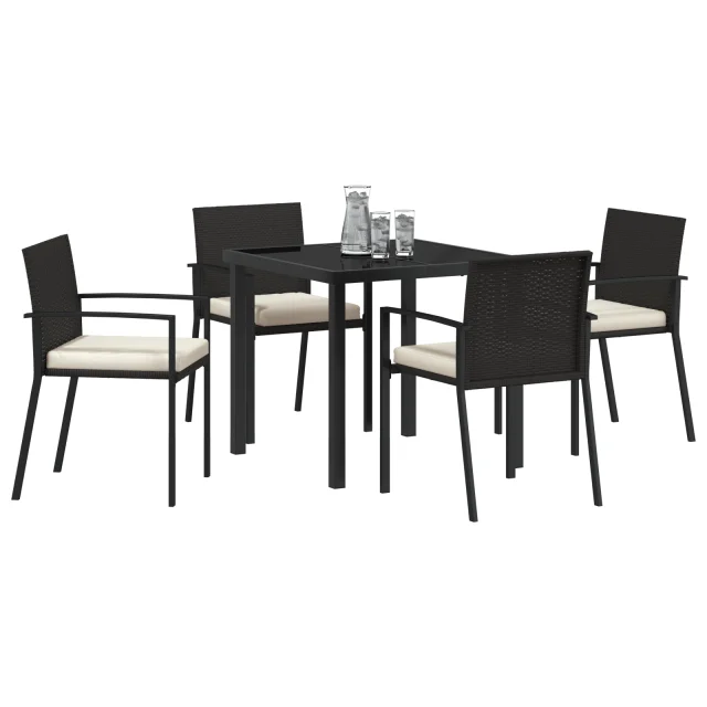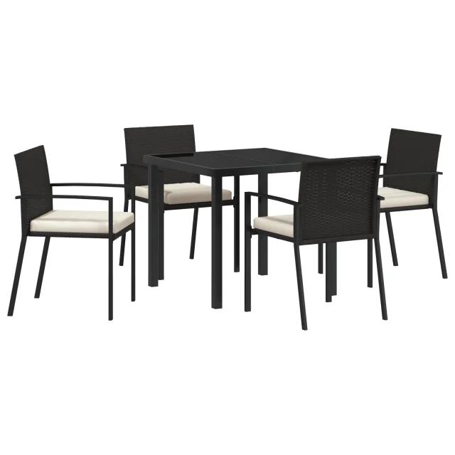 vidaXL 5-delni vrtni jedilni set črn poli ratan