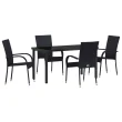 vidaXL 5-delni vrtni jedilni set črn poli ratan