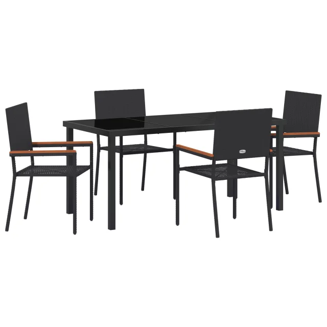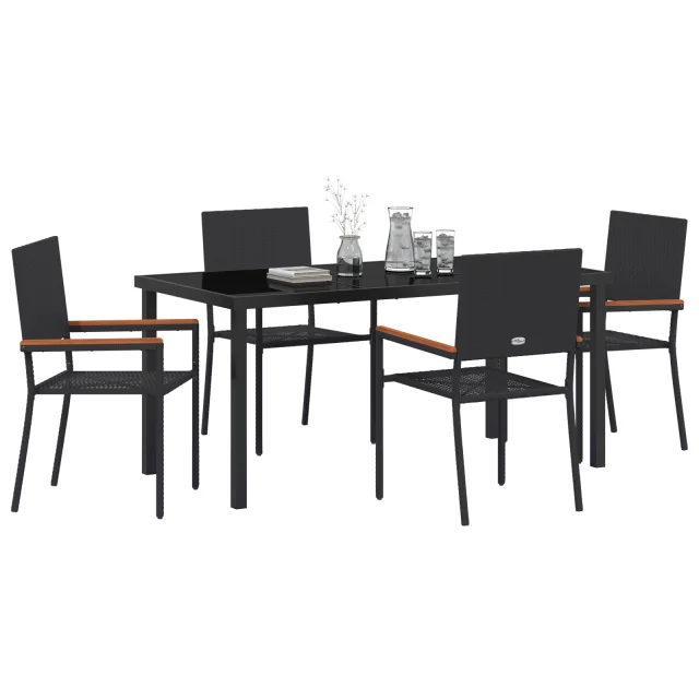 vidaXL 5-delni vrtni jedilni set Črn Poly Rattan