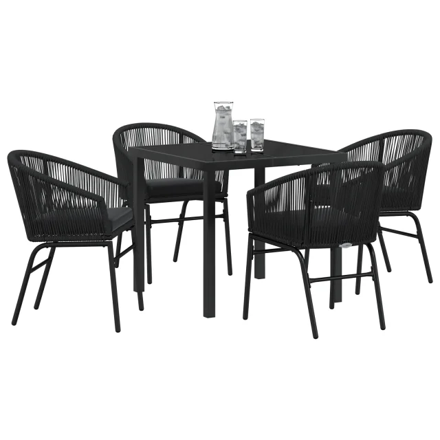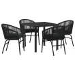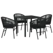vidaXL 5-delni vrtni jedilni set Črna Poli ratan