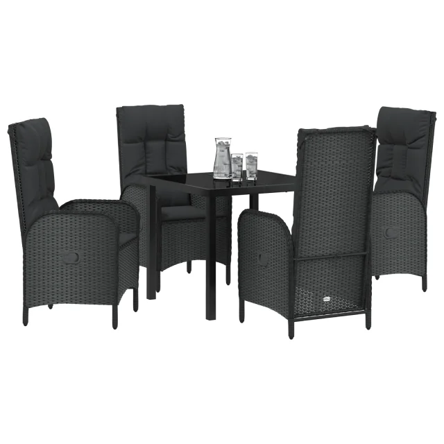 vidaXL 5-delni vrtni jedilni set Črna Poli ratan