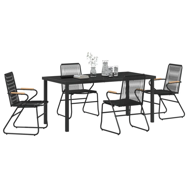 vidaXL 5-delni vrtni jedilni set črnega PVC ratana