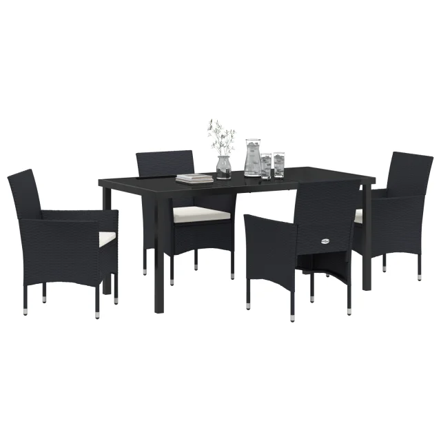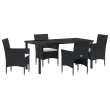 vidaXL 5-delni vrtni jedilni set Črni poli ratan