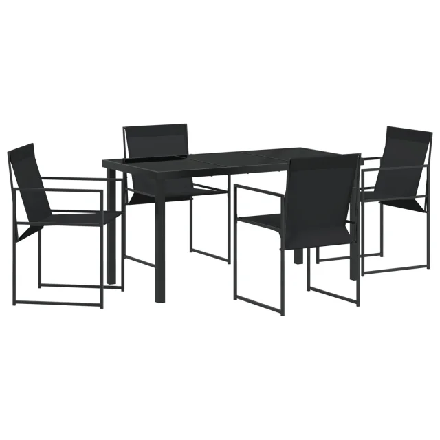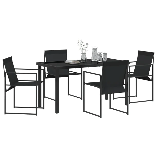 vidaXL 5-delni vrtni jedilni set Črno Textilene in jeklo