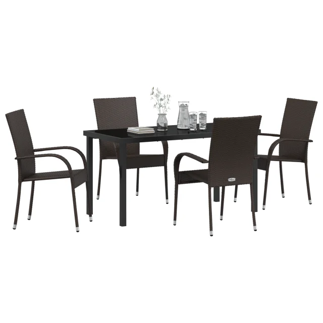 vidaXL 5-delni vrtni jedilni set Rjava Poli ratan
