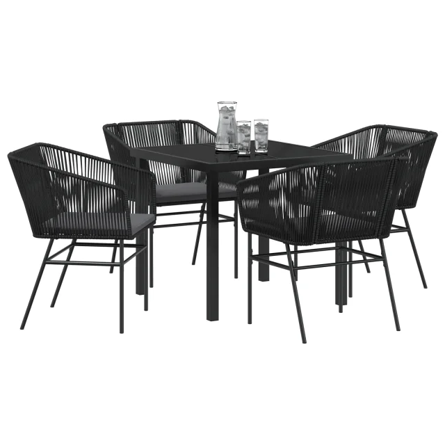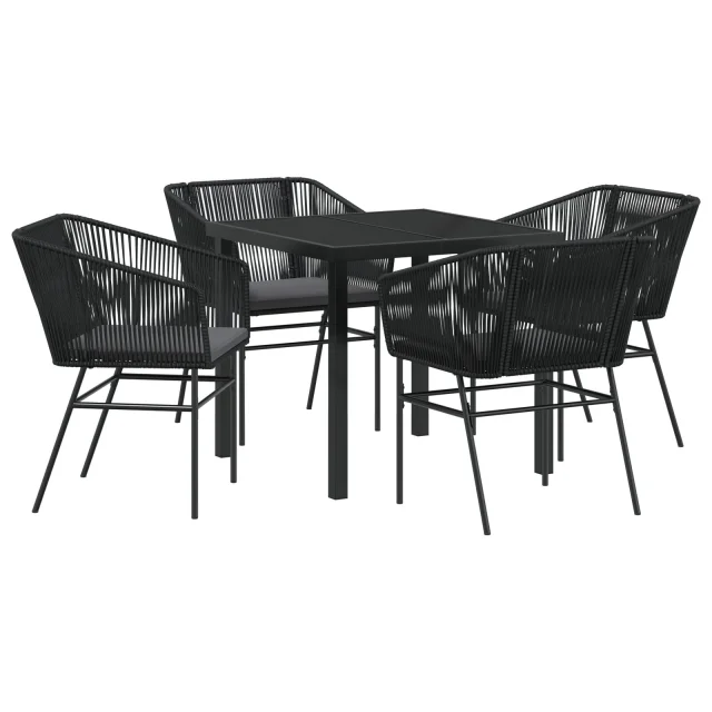 vidaXL 5-delni vrtni jedilni set s blazinami črn poli ratan