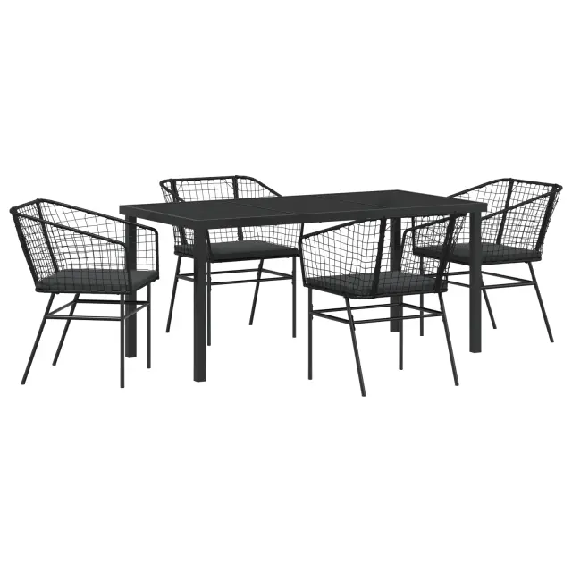 vidaXL 5-delni vrtni jedilni set s blazinami črna poli ratan