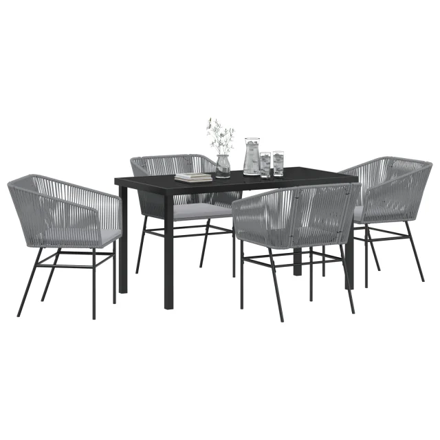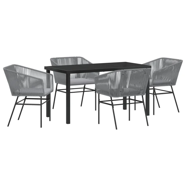 vidaXL 5-delni vrtni jedilni set s blazinami v sivi poli ratan