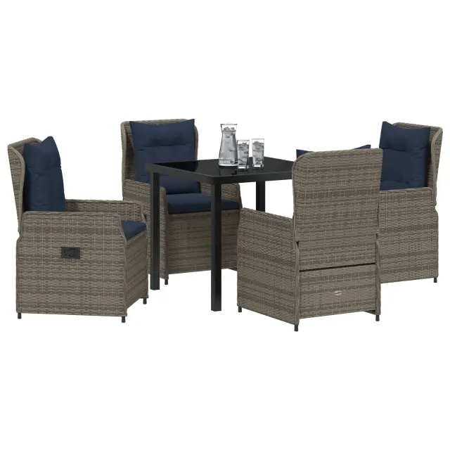 vidaXL 5-delni vrtni jedilni set Siva Poli ratan