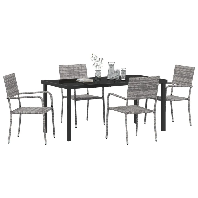vidaXL 5 delni vrtni jedilni set Siva Poli ratan