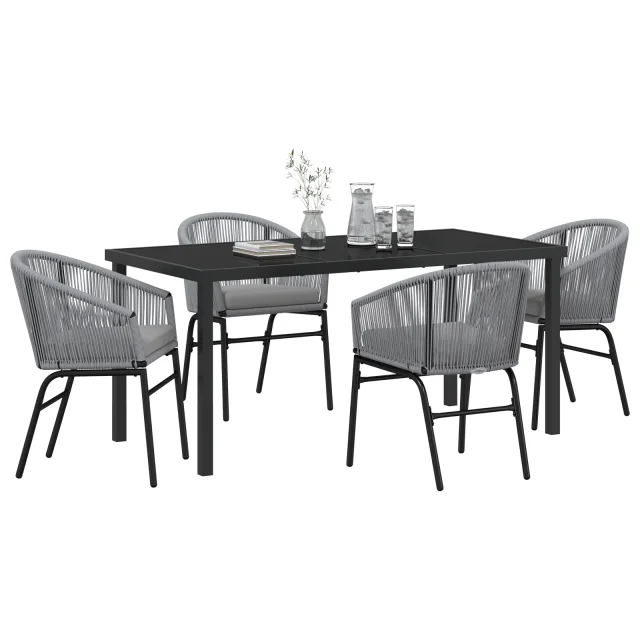 vidaXL 5-delni vrtni jedilni set sivi poli ratan