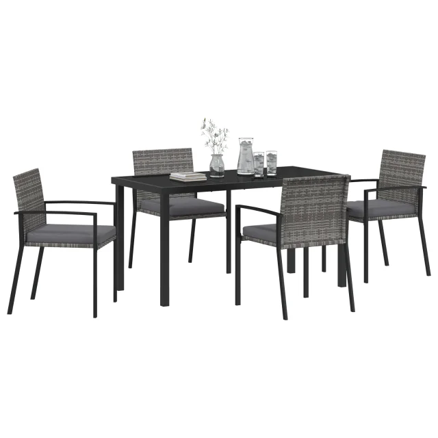 vidaXL 5-delni vrtni jedilni set sivo poli ratan