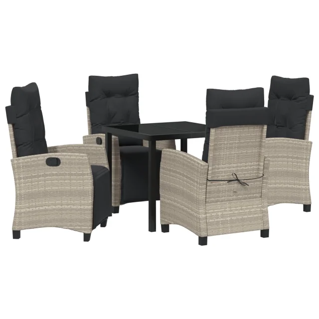 vidaXL 5-delni vrtni jedilni set Svetlo siva Poli ratan