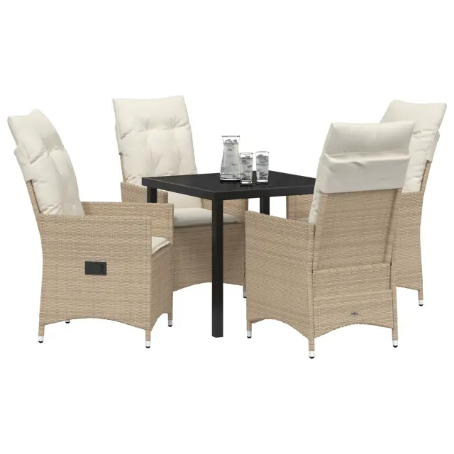 vidaXL 5-delni vrtni jedilni set z blazinami bež poli ratan