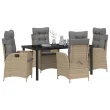vidaXL 5-delni vrtni jedilni set z blazinami, bež poli ratan