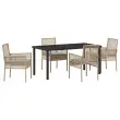 vidaXL 5-delni vrtni jedilni set z blazinami Bež Poli Ratan