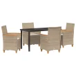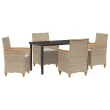 vidaXL 5-delni vrtni jedilni set z blazinami bež poli ratana