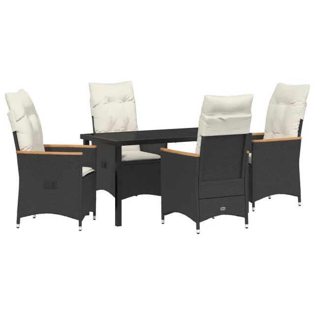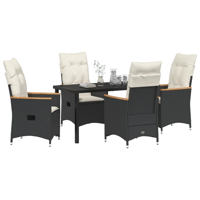 vidaXL 5-delni vrtni jedilni set z blazinami Črn poli ratan