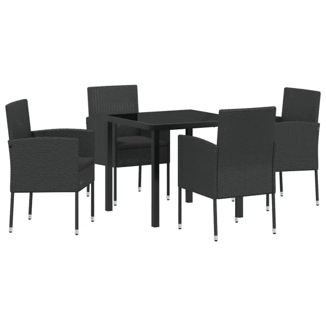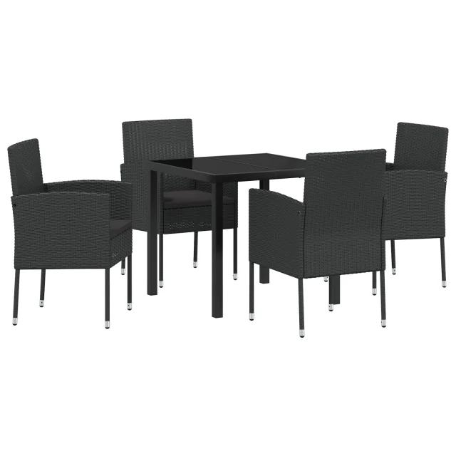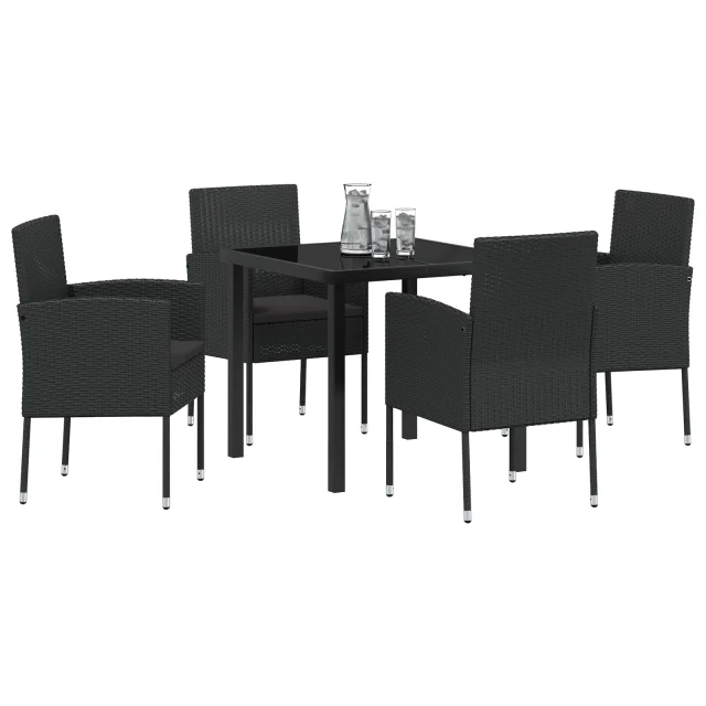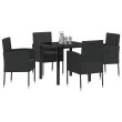 vidaXL 5-delni vrtni jedilni set z blazinami črn poli ratan
