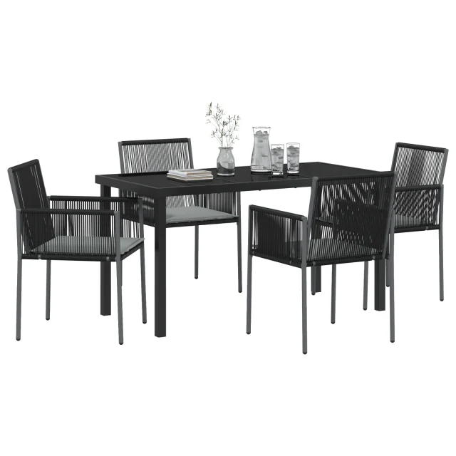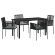 vidaXL 5-delni vrtni jedilni set z blazinami črn poli ratan