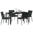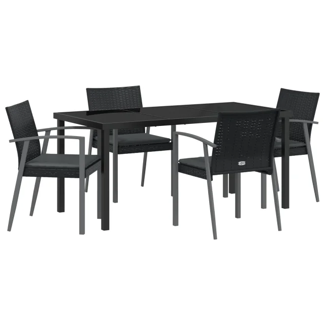 vidaXL 5-delni vrtni jedilni set z blazinami Črn poli ratan
