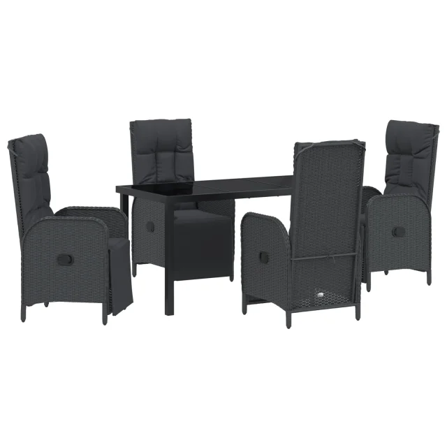 vidaXL 5-delni vrtni jedilni set z blazinami Črna Poli ratan