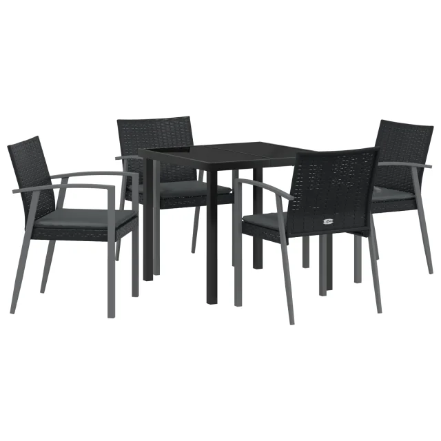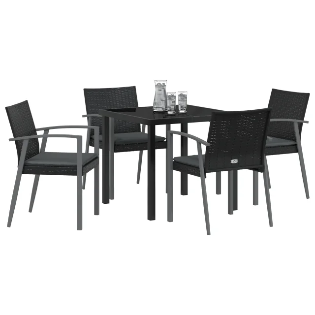 vidaXL 5-delni vrtni jedilni set z blazinami črna poli ratan