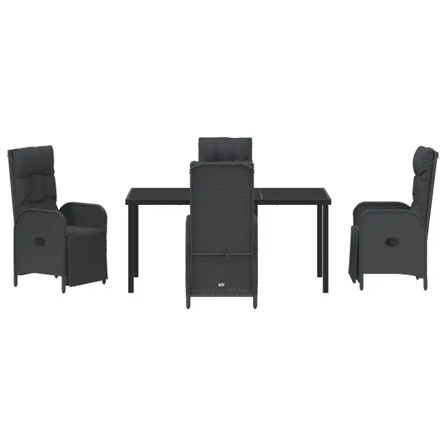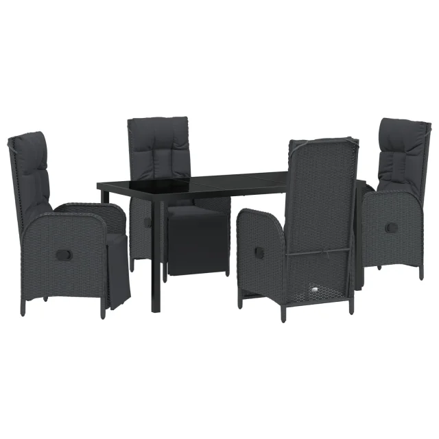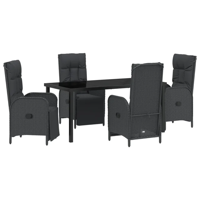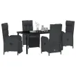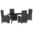 vidaXL 5-delni vrtni jedilni set z blazinami črna poly ratan