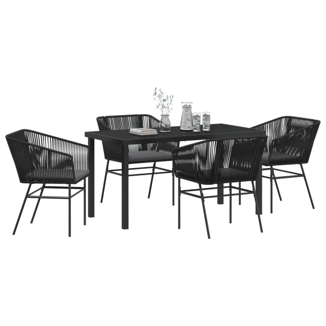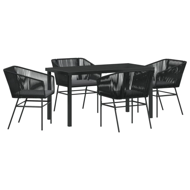 vidaXL 5-delni vrtni jedilni set z blazinami črni poli ratan