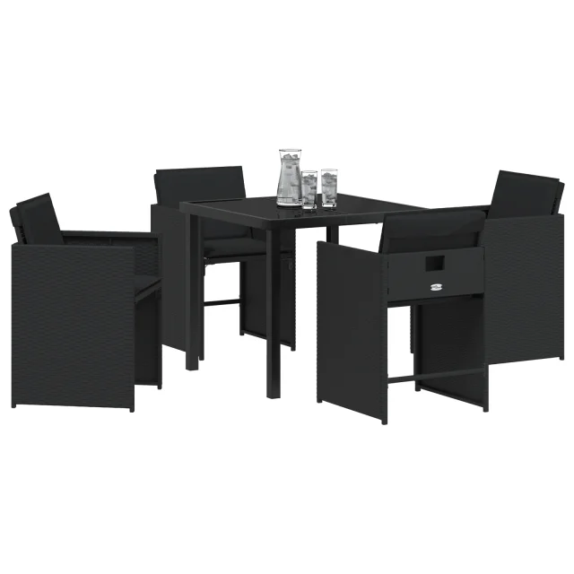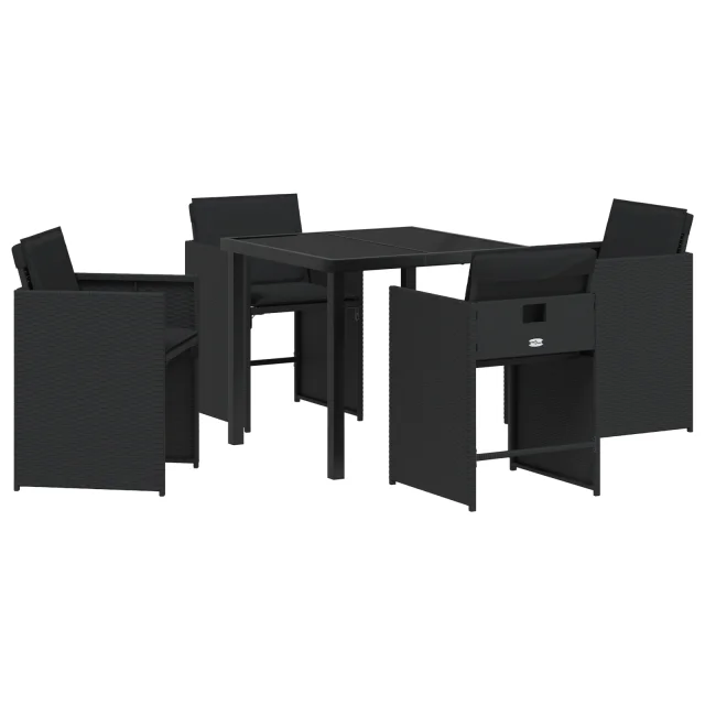 VidaXL 5-delni vrtni jedilni set z blazinami črni poli ratan