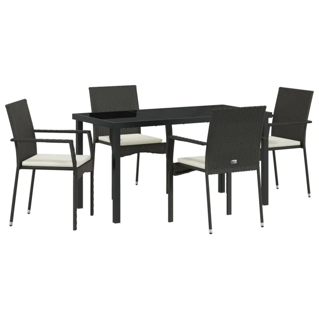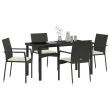 vidaXL 5-delni vrtni jedilni set z blazinami črni poli ratan
