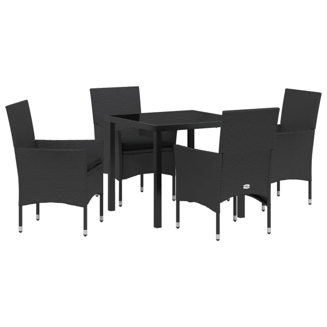 vidaXL 5-delni vrtni jedilni set z blazinami črni poli ratan
