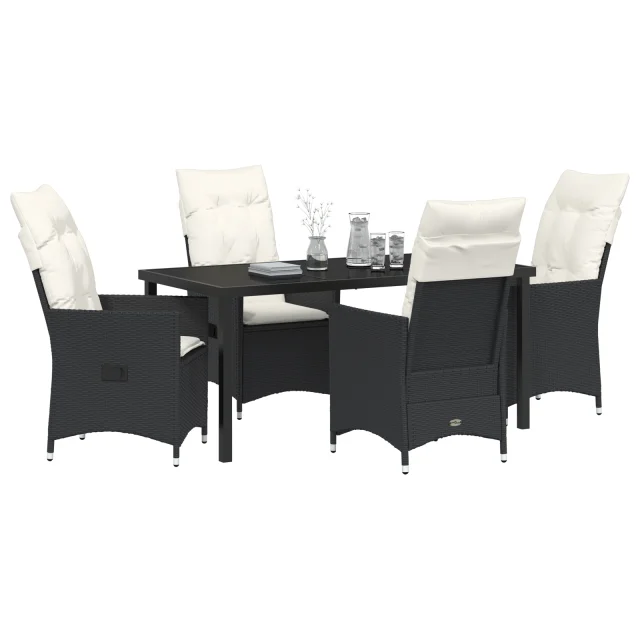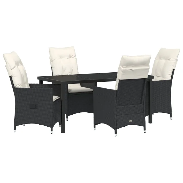 vidaXL 5 Delni Vrtni Jedilni Set z Blazinami Črno Poli Ratan.