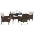 vidaXL 5-delni vrtni jedilni set z blazinami Rjav poli ratan