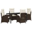 vidaXL 5-delni vrtni jedilni set z blazinami, rjava, poli ratan