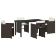 vidaXL 5-delni vrtni jedilni set z blazinami Rjavi poli ratan