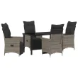 vidaXL 5 delni vrtni jedilni set z blazinami siva poli ratan