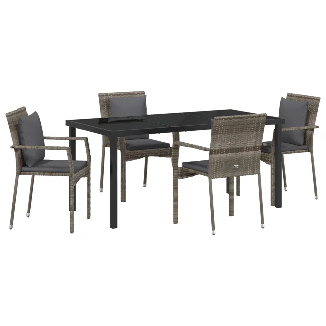 vidaXL 5-delni vrtni jedilni set z blazinami siva poli ratan