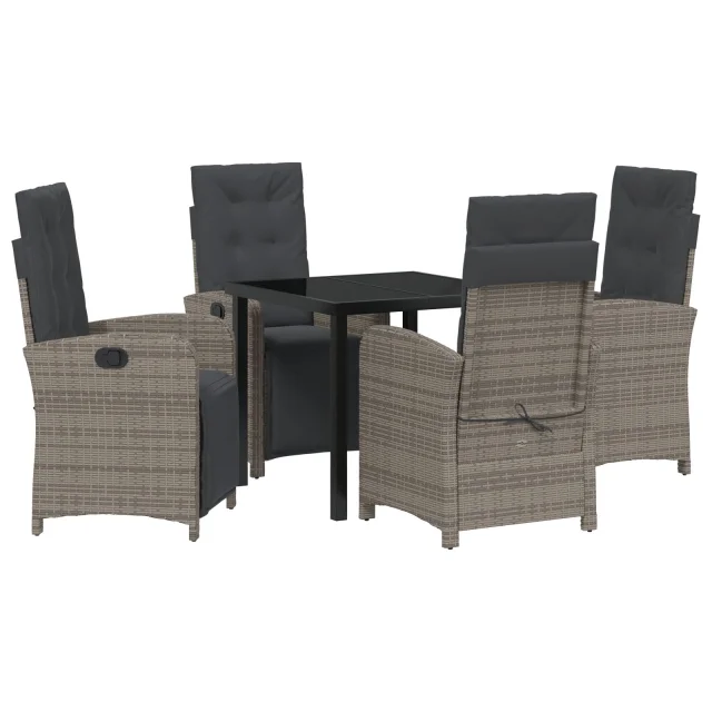 vidaXL 5-delni vrtni jedilni set z blazinami siva poli ratan