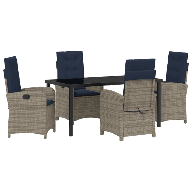 vidaXL 5-delni vrtni jedilni set z blazinami - sivi poli ratan