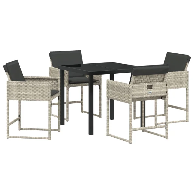 vidaXL 5-delni vrtni jedilni set z blazinami svetlo siva poli ratan