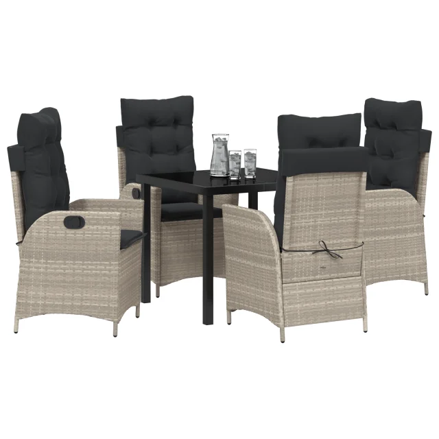 vidaXL 5-delni vrtni jedilni set z blazinami svetlo siva poli ratan