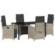 vidaXL 5-delni vrtni jedilni set z blazinami svetlo siva poli ratan